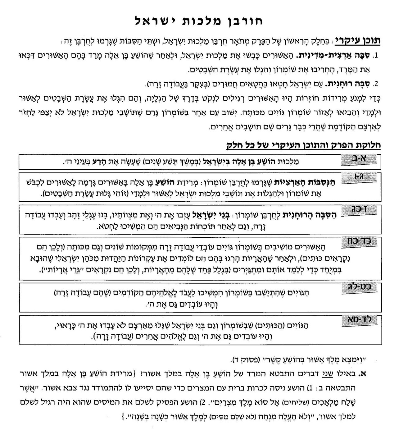 - ההסבר המדיני וההסבר הדתי לחורבן ממלכת ישראל.