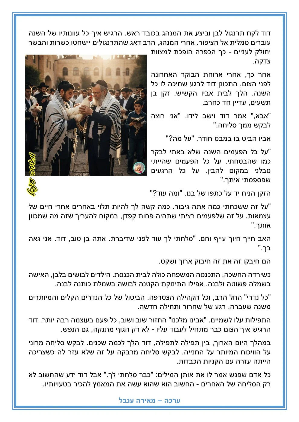 לכפר על המעשים. · "בחדש השביעי בעשור לחדש תענו את נפשותיכם, וכל מלאכה לא תעשו, האזרח והגר הגר בתוככם: · כי ביום הזה יכפר עליכם לטהר אתכם, מכל חטאותיכם, לפני ה' תטהרו, · שבת שבתון היא לכם, ועיניתם את נפשותיכם, חוקת עולם". (ויקרא, פרק ט"ז, כ- ל"א) · "כי ביום הזה יכפר עליכם לטהר אתכם" · אומרת המשנה: "עבירות שבין אדם למקום, יום הכיפורים מכפר. · שבינו לבין חברו- אין יום הכיפורים מכפר, עד שיירצה את חברו". (מסכת יומא, פרק ח' משנה ז) . קישור לאתרים