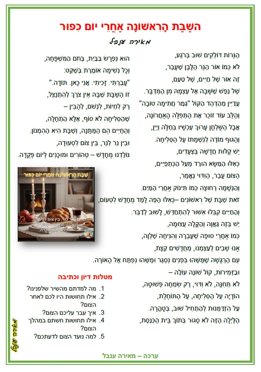 יום הכיפורים הוא היום הנעלה והמקודש ביותר מכל ימות – השנה, שבו האדם מתנזר לחלוטין מכל חיי העולם – הזה כשהוא שרוי בצום ובעינוי נפש, ומקדיש את כל כולו להיטהרות ולהתקדשות כדי לכפר על חטאי כל השנה.