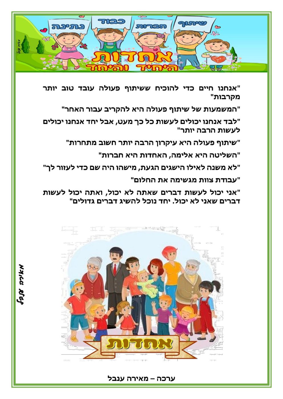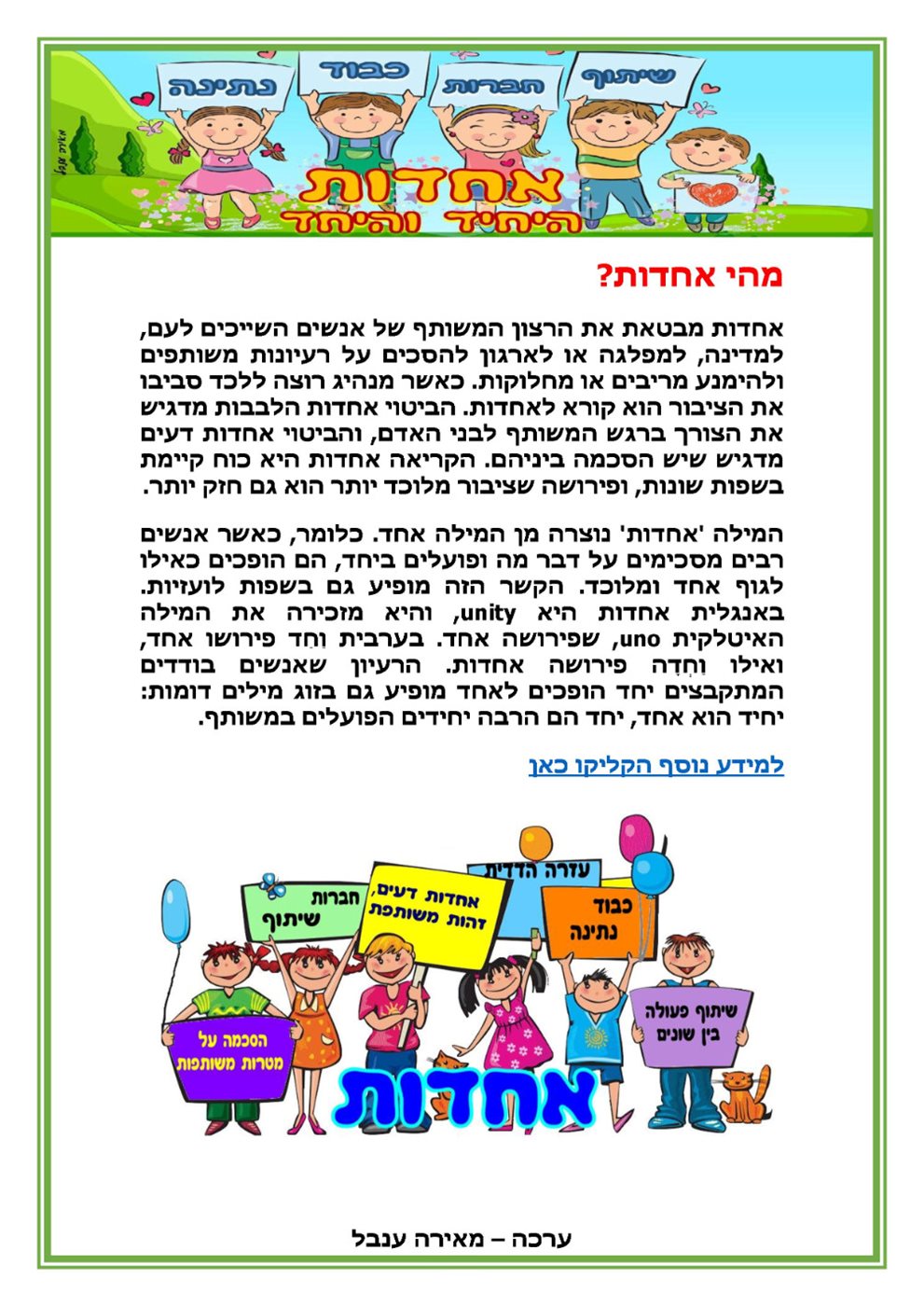 סרטון בנושא אחדות - הקליקו על התמונה או על הקישור https://www.youtube.com/watch?v=zRs1lcentZg&feature=youtu.be |