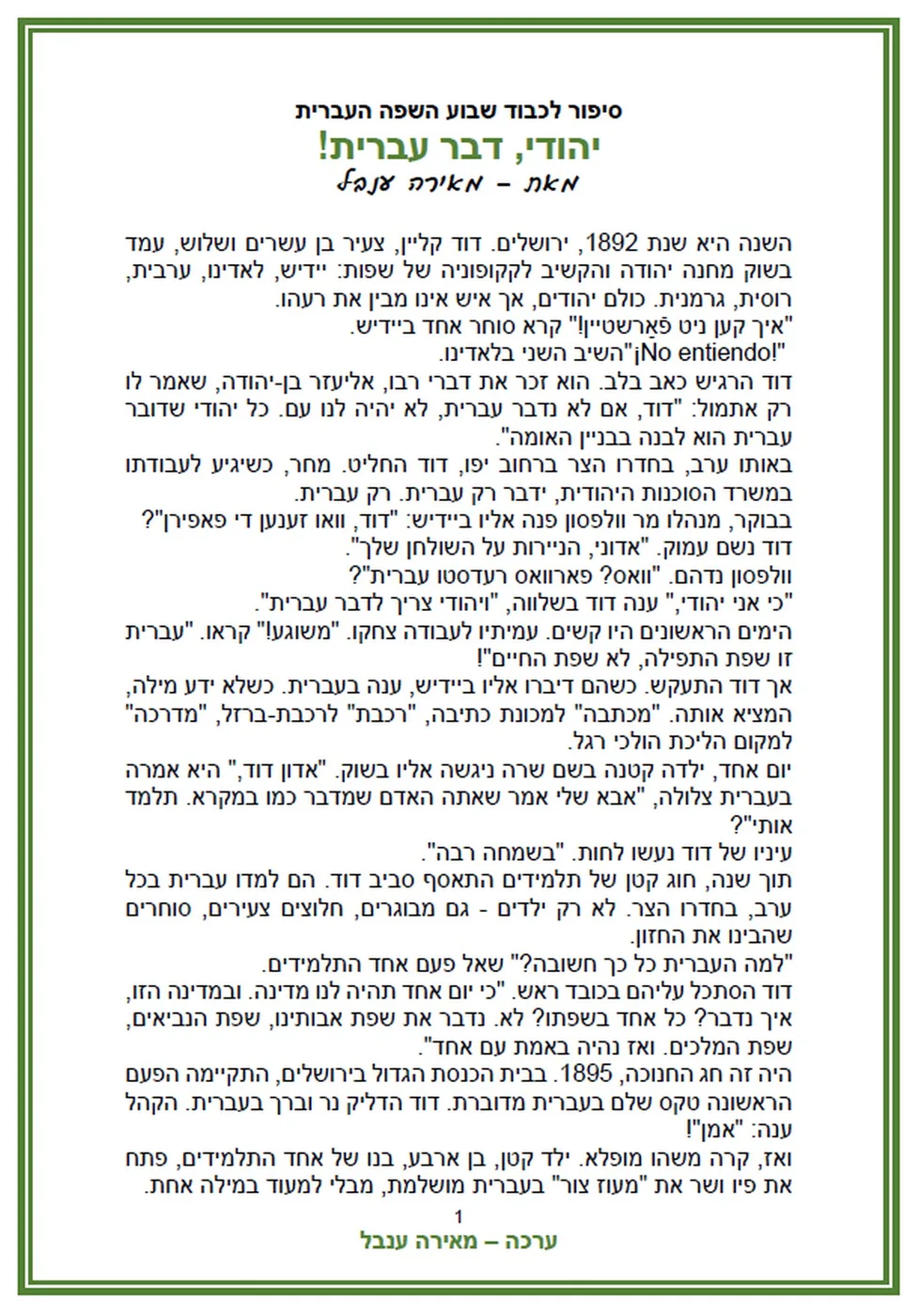 במשך כל השנים, בחייו ולאחר מותו, לא פסק הפולמוס על גודל התרומה של אליעזר בן יהודה ועל עצם רעיון החייאת השפה. התבוננות בפועלו מעלה תשובה אחת בלבד: בן יהודה הוא המחבר הגדול. הוא חיבר בין עדות היהודים באשר הן באמצעות השפה; יצר את החיבור המשולש שנשבר בגלות בין עם-ארץ-ושפה; חיבר את לשון קודש ולשון חול, חיבר לשון האם ולשון אב, יצר חיבור ויחסי גומלין משלביים, בין לשון דיבור ולשון כתיבה, והוכיח שניתן להתיך את הרבדים ההיסטוריים של השפה, היתוך שבלשנים מלומדים טענו בלהט שאינו אפשרי. הוא יצר תשתית לעברית אופפת כל, שהיא ליבת המהפכה. בכל אלה פעל בן יהודה על פי אינטואיציה גאונית שכללה כמה עקרונות: שפת הדיבור היא המפתח להצלחת המהפכה; התקשורת והחינוך הם המתווכים בין קברניטי המהפכה לעם. המהלכים אליהם הוביל בן יהודה שרירים וקיימים עד היום: אימוץ ההברה מזרחית גם אם בהצלחה חלקית, עקרונות יצירת המילים, הוראת העברית בעברית, והתשתית למילונאות העברית החדשה. בן יהודה נפטר בביתו בגיל 66, לאחר שניסה במשך כיומיים לכתוב מאמר מדיני ולא הצליח להשלים יותר מעשר שורות. חמדה מצאה אותו אוחז עט ביד מול הנייר והשכיבה אותו על מיטתו, והרופא הגיע כשכבר לא היה בין החיים. כשהגיעו אנשי "חברה קדישא" עם צאת השבת הביטו בו בהשתאות מחזיק בעט בידו הקמוצה, כאילו אמרו זה לזה: אפילו ברגעיו האחרונים עוד חילל את השבת. בעיניי מסמל העט ביד הקמוצה את אגדת אליעזר בן יהודה, אגדה שהייתה באמת: האיש שחי בתוך השפה העברית והשפה העברית חייתה בו, והשניים היו לאחד. כיתה ווירטואלית הקליקו על התמונה לפעילות