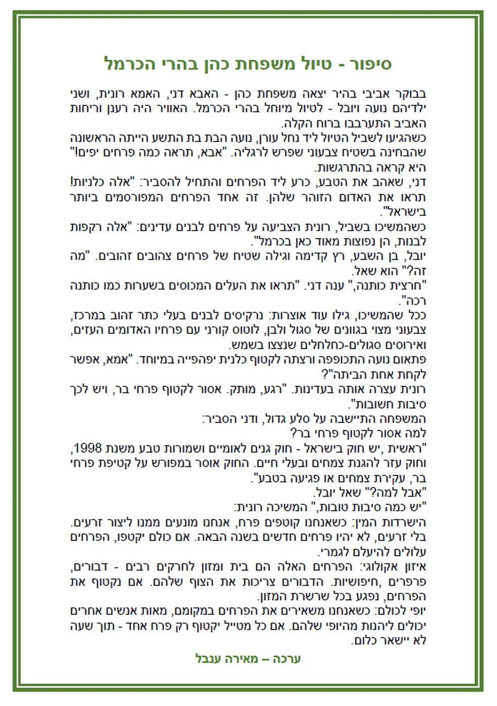 לסדר ט"ו בשבט, משה"ח מנהגי החג אכילת פירות יבשים ליל ט"ו בשבט נחוג על ידי המקובלים בצפת בלוויית מיטב פירות הארץ. אך לקהילות שחגגו את החג בתפוצות היה קשה להשיג פירות טריים בחורף, ולכן השתמשו בפירות יבשים שמקורם בארץ ישראל. כיום נחשבים הפירות המיובשים למטעמים ואפשר להשיגם לאורך כל השנה, אך מקובל להרבות באכילתם בט"ו בשבט לזכר המנהג ההיסטורי. חג הנטיעות "וכי תבואו אל הארץ ונטעתם כל עץ מאכל" (ויקרא י"ט, כ"ג) נטיעת עצים בישראל היא מצווה בתורה, שקיבלה משנה תוקף עם שיבת העם היהודי לארצו. בנוסף להיותה פעולה המפריחה את הארץ, מהווה הנטיעה המחשה של שאיפת העם להכות שורשים באדמת הארץ. מסורת הנטיעות בארץ ישראל החלה בשנת 1890, כאשר הרב זאב יעבץ, מנהל בית הספר בזיכרון יעקב, לקחת את תלמידיו לטעת עצים באזור המושבה. ב-1908 אומץ המנהג באופן רשמי על ידי הסתדרות המורים ומאוחר יותר על ידי הקרן הקיימת לישראל. כיום יוצאים ילדי בית הספר בכל שנה לטעת עצים ביערות הקק"ל ברחבי הארץ. חג שמירת הטבע בשנים האחרונות נוספה לט"ו בשבט משמעות אקולוגית, כראוי לחג המדגיש את הקשר ההדוק בין האדם לצומח ולטבע בכלל. גופים העוסקים בהגנה על החי והצומח, כגון החברה להגנת הטבע ורשות שמורות הטבע, יחד עם משרד החינוך, הכריזו על ט"ו בשבט כחג שמירת הטבע. יום החג מוקדש לפעילויות התורמות לטיפוח העצים והנוף הירוק ברחבי הארץ.