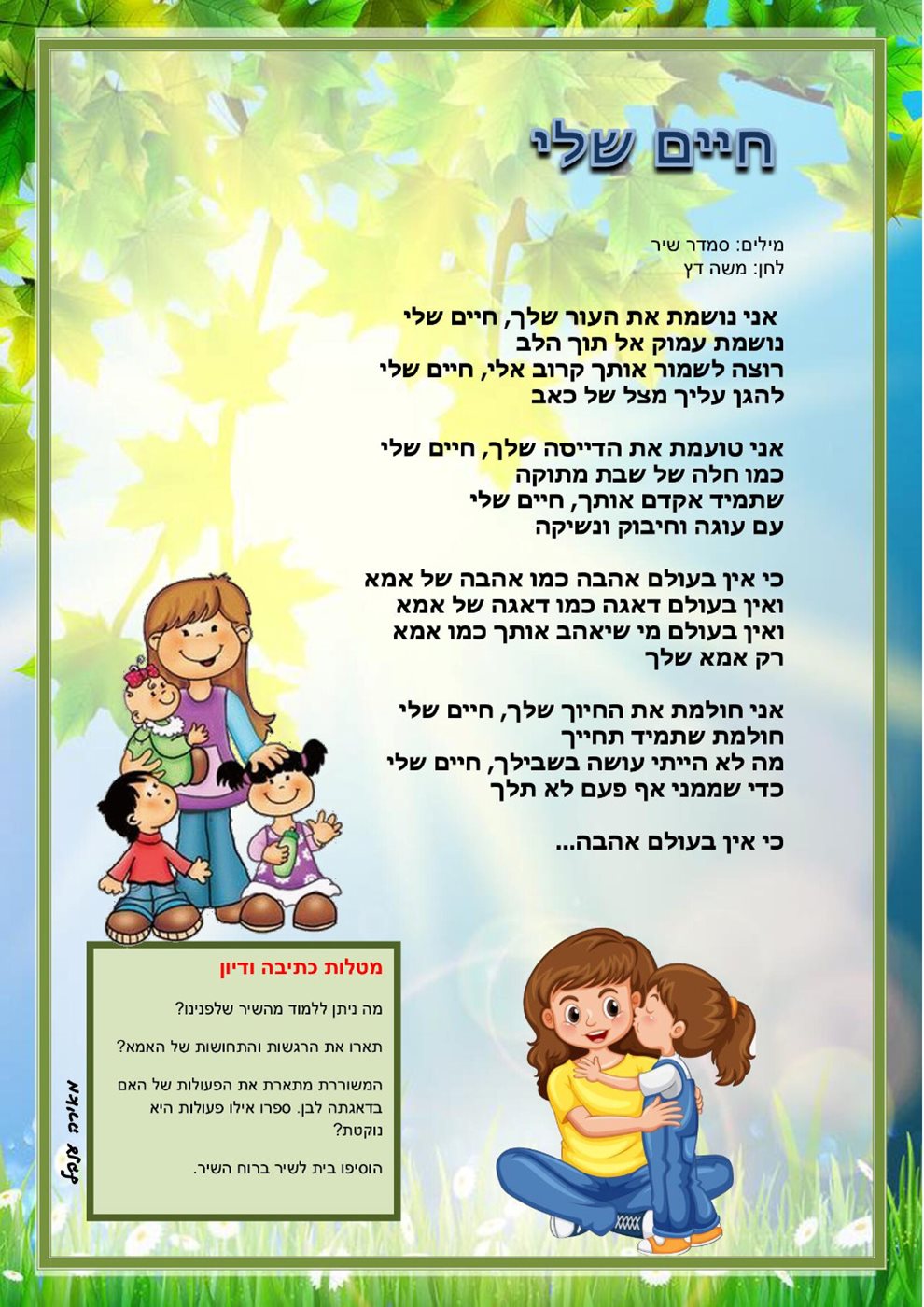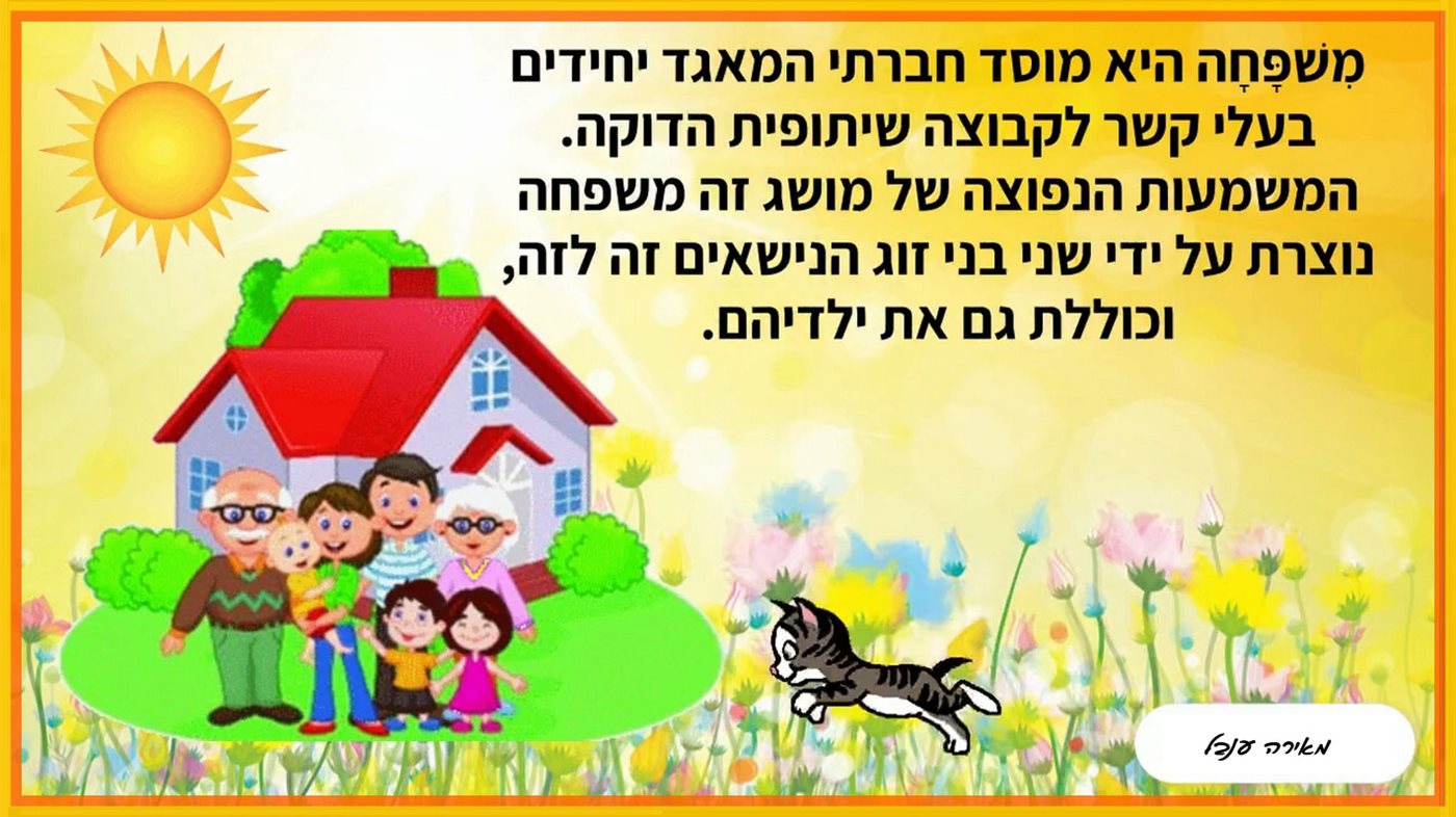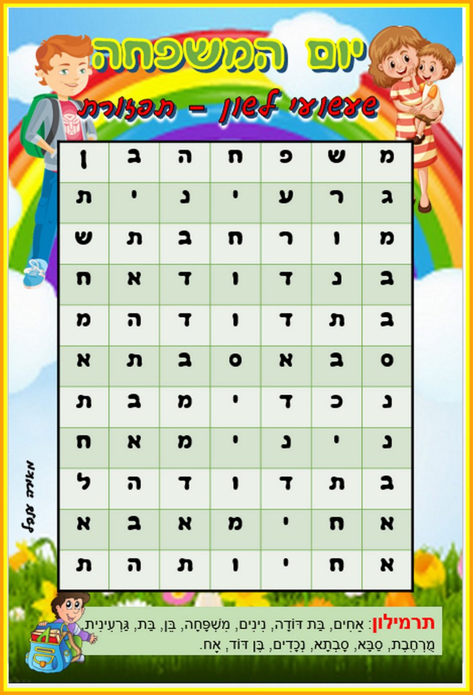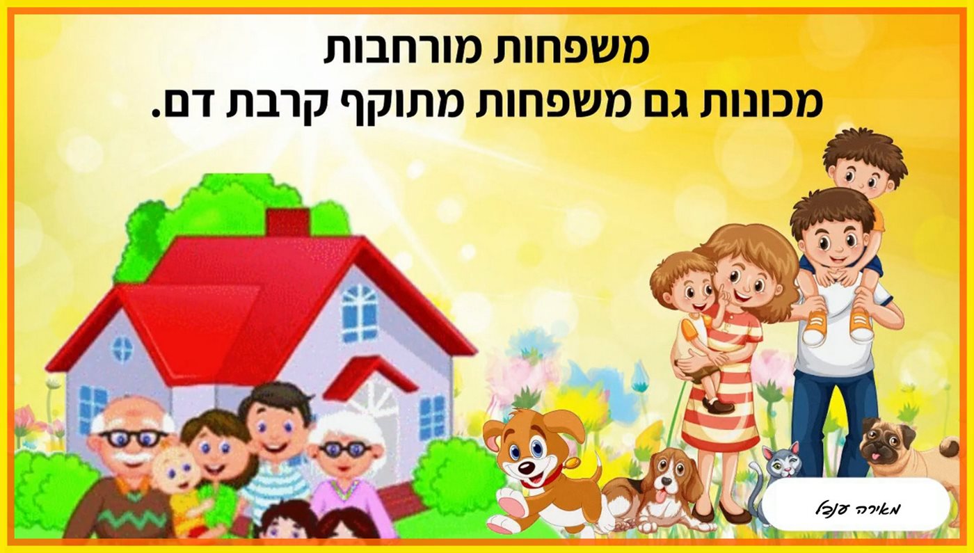 יום המשפחה בפורטל עובדי ההוראה המשפחה בישראל - דעת יום המשפחה-מכללת קיי – חלק ב' ברכה ליום המשפחה, אתר הברכות הישראלי כרטיסי ברכה ליום המשפחה - באנגלית כל אחד והמשפחה שלו – יהודה אטלס סרטון ליום המשפחה - המשפחה שלי |