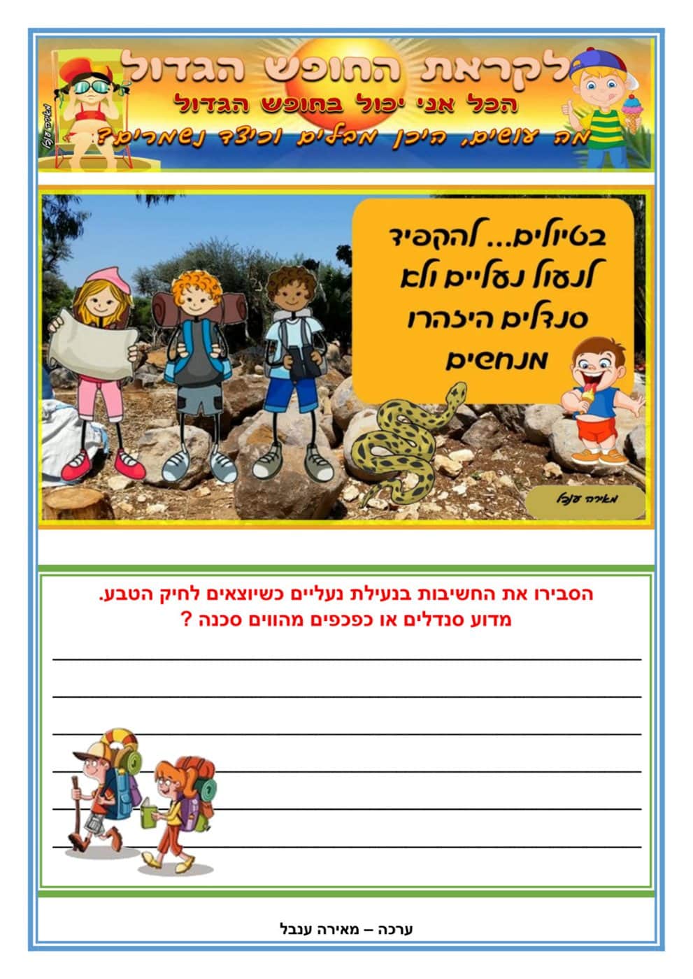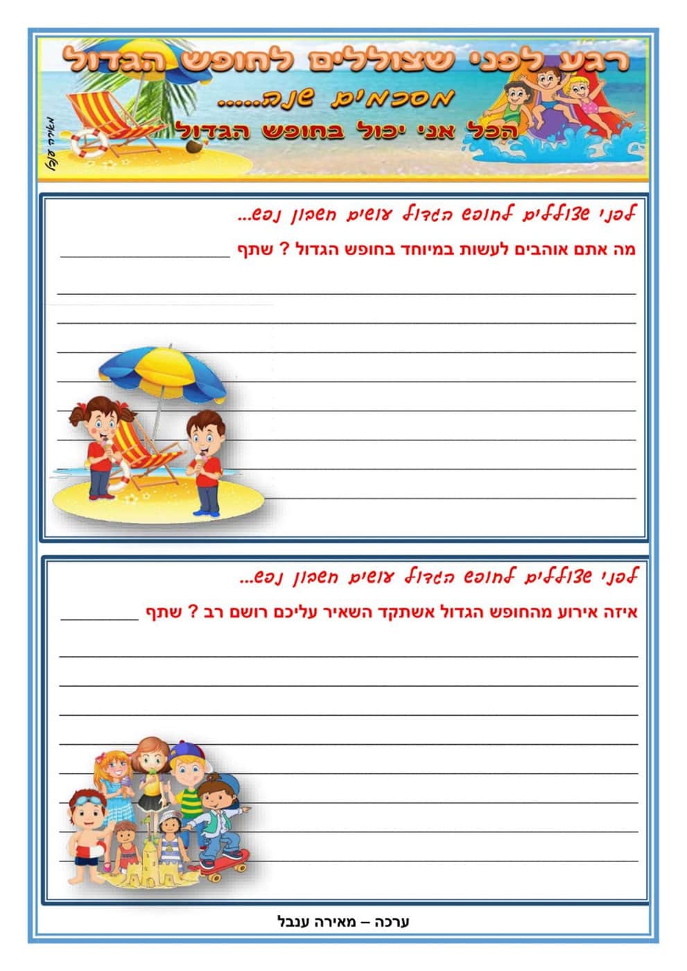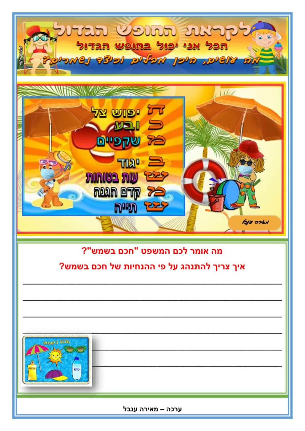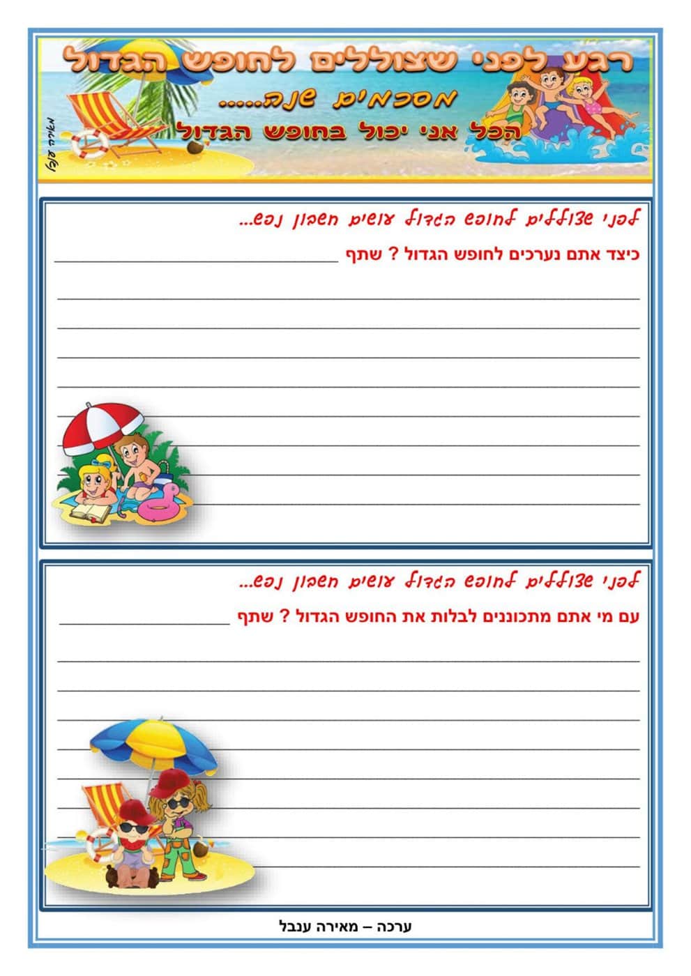 ![]() החופש הגדול הוא השם הישראלי לחופשת הקיץ ברחבי העולם המסיימת את שנת הלימודים במוסדות החינוך. החופש הגדול מתקיים במרבית מדינות העולם במהלך חודשי הקיץ יולי ואוגוסט. בתקופת החופש הגדול לא מתקיימים לימודים בבתי הספר אך ילדים רבים הולכים לקייטנות ומחנות קיץ בזמן החופשה. למידע נוסף – הקליקו כאן הערכות לקראת החופש סיום שנת הלימודים והיציאה לחופשה, הם אירועים בעלי משמעות ומאפיינים ייחודיים לכל אחד ואחת. שינוי זה, יכול לזמן ציפיות וחוויות מרעננות, לצד חששות ופחדים הקשורים למעבר בין שגרת הלימודים לבין החופשה. אז רגע לפני שאתם נבהלים, נרגשים או תוהים איך ניתן לנווט את הספינה הזו בין גלי הים לעבר חוף מבטחים, הנה כמה עקרונות שאספנו , שיעזרו לכם להתבונן על החופש ותקופת הקיץ בצורה מאוזנת ומשפחתית, לטובת ההנאה המשותפת. תכנון פעילות: תכננו יחד את הפעילויות. תכנון משותף, עשוי להגביר את תחושת השייכות והמשמעות. עשו רשימה של כל הפעילויות שהייתם רוצים לעשות ובצעו חלוקה מבחינת ימים. איזון: חפשו את האיזון בין רצונכם לבין רצון שאר בני המשפחה. הגדרת מועדי מנוחה: כל אחד ואחת זקוקים בחופש לשקט ולרגיעה. זכרו מותר להשתעמם ולפעמים אפילו רצוי ! לשעמום יש תפקיד משמעותי – במובנו המפרה, המפתח, המשחרר מעט. כזה הנותן מקום לאוויר, לדמיון ויצירתיות. באמצעותו תלמדו ליזום ולמצוא מה הם תחומי העניין שלכם ולא רק אלו שמכתיבים עבורכם. חיזוק היכולות : הגדירו לכם בתחילת החופש אילו יכולות ברצונכם לחזק , ועשו זאת מידי יום בכמות קטנה (רצוי בבוקר כשערנים יותר). גבולות: גם בחופש רצוי לשמור על גבולות. הם אמנם יכולים להיות גמישים מהרגיל, אך הם הכרחיים עבור תחושת הביטחון בה הכול אפשרי. הקשבה אחרת: כאשר אנחנו מורידים הילוך מהמרוץ היומיומי, נוצרת הזדמנות להקשיב באמת אחד לשני. הזדמנות להתקרבות: החופש הוא הזדמנות ליצירת בילויים משותפים עם המשפחה, להתקרבות ולהידוק ושיפור היחסים בינכם. הבית כעוגן: לא חייבים לרוץ ממקום למקום, לא חייבים לגלוש, לקפוץ, לצלול, לצאת ולחפש אחר מקומות רבים כל כך לבילוי רציף. זכרו, גם הבית יכול להיות סביבה לבילוי, הנאה וזמן איכות משותף. למידע נוסף – הקליקו כאן הקליקו על התמונה לפתיחת קובץ PDF