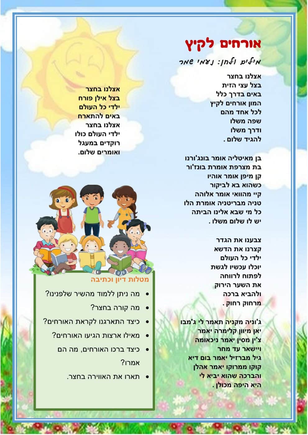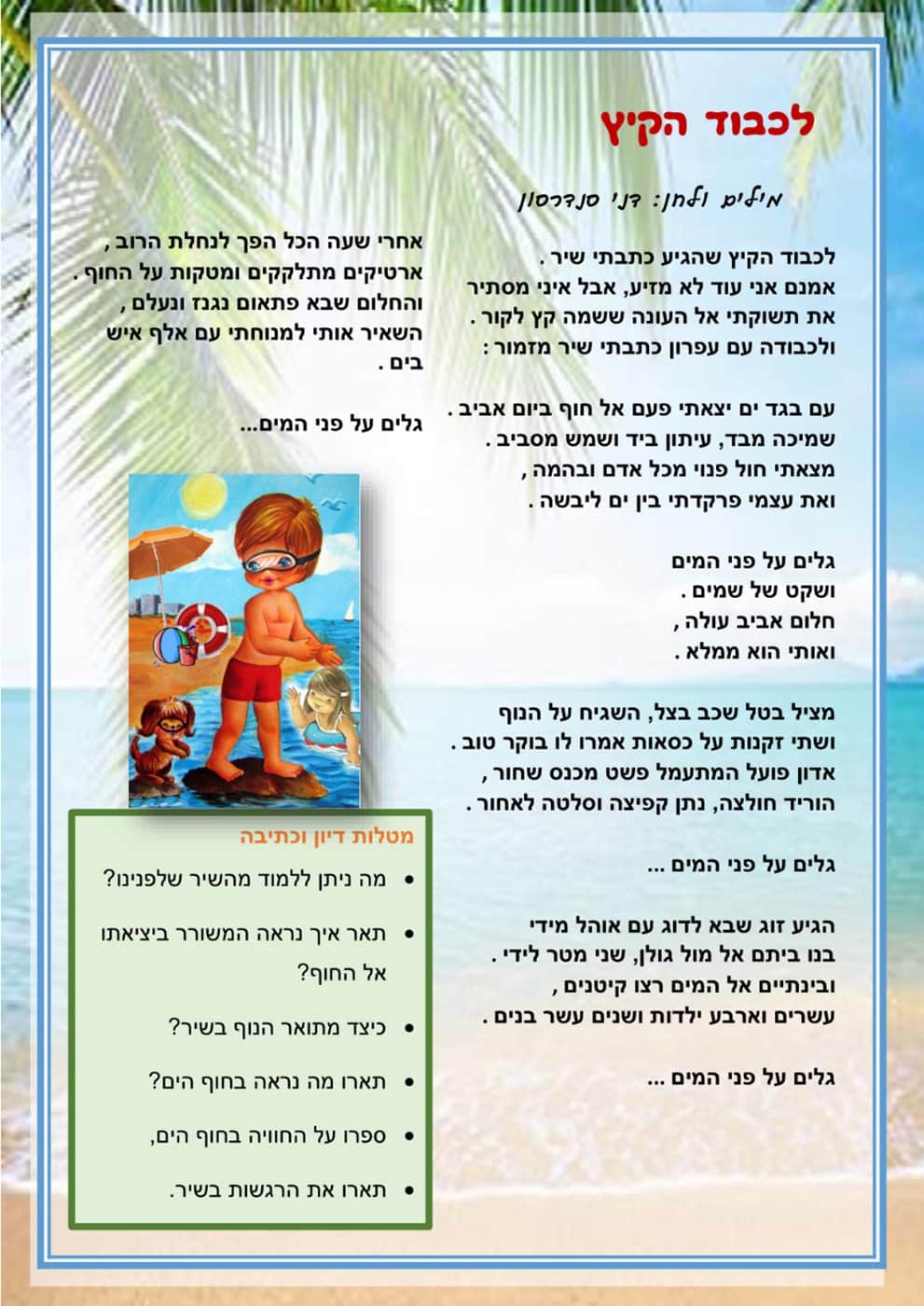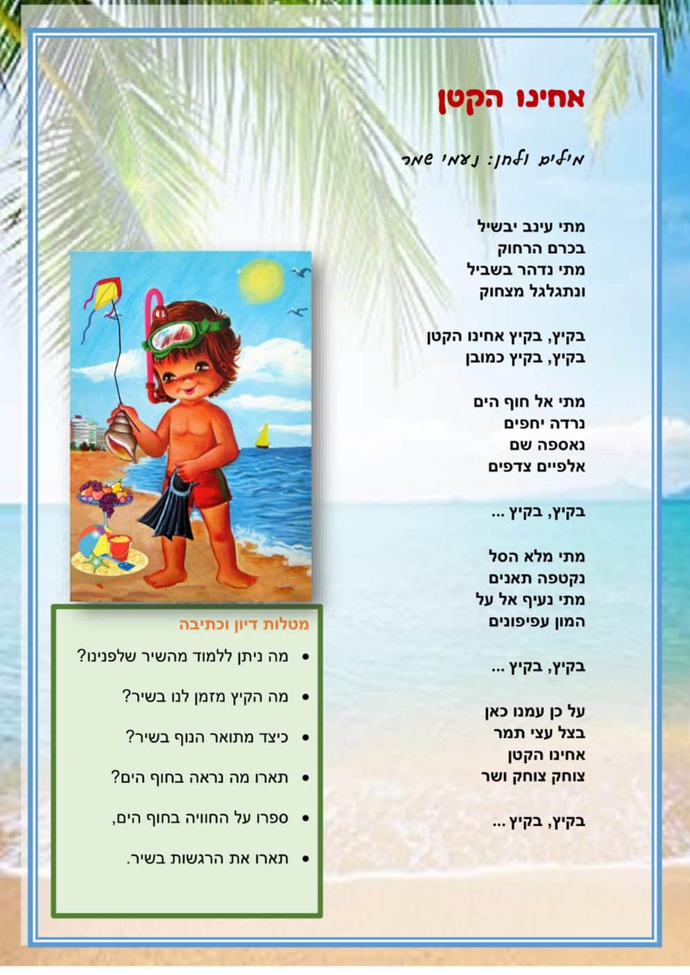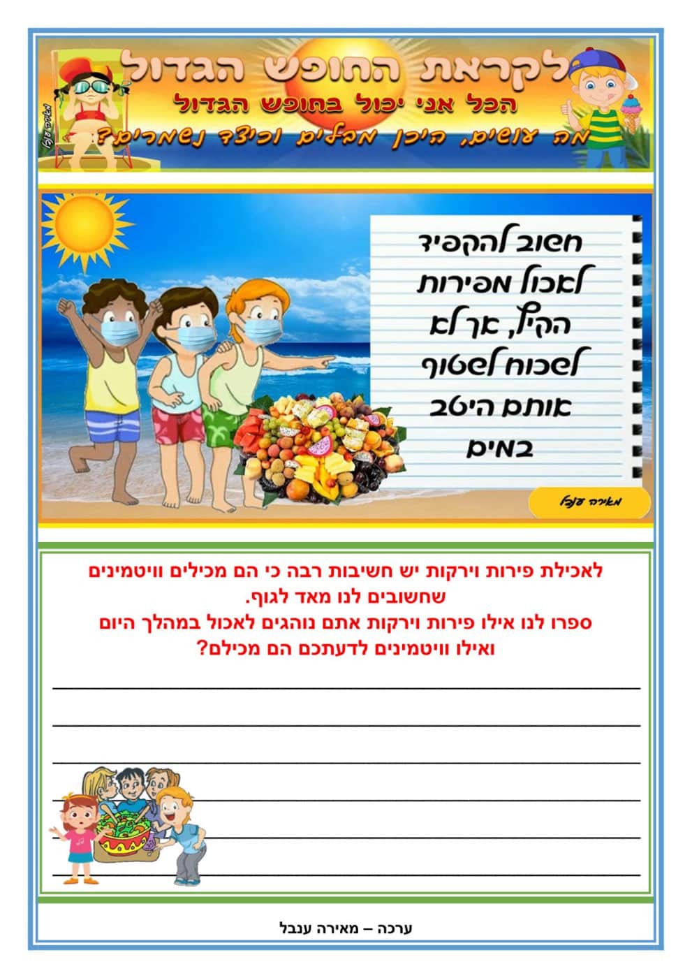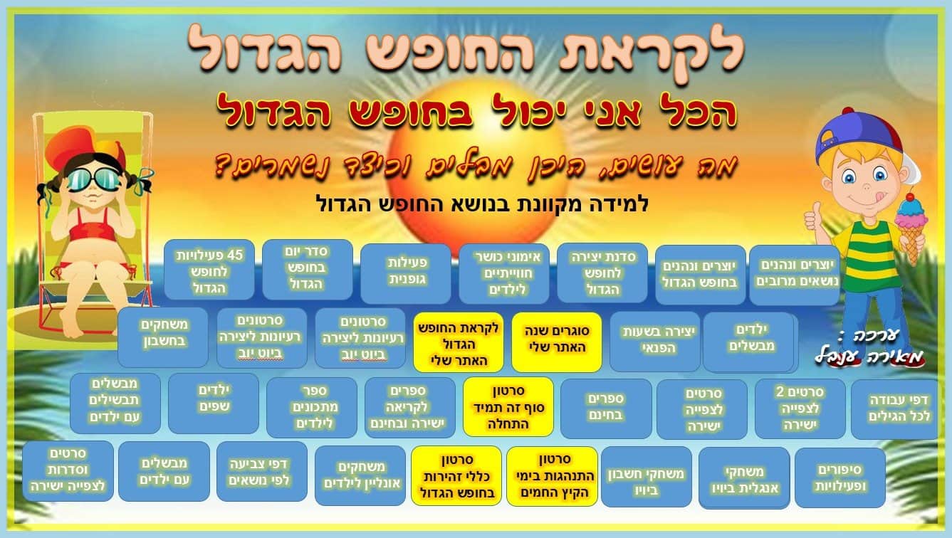 ![]() החופש הגדול הוא השם הישראלי לחופשת הקיץ ברחבי העולם המסיימת את שנת הלימודים במוסדות החינוך. החופש הגדול מתקיים במרבית מדינות העולם במהלך חודשי הקיץ יולי ואוגוסט. בתקופת החופש הגדול לא מתקיימים לימודים בבתי הספר אך ילדים רבים הולכים לקייטנות ומחנות קיץ בזמן החופשה. למידע נוסף – הקליקו כאן הערכות לקראת החופש סיום שנת הלימודים והיציאה לחופשה, הם אירועים בעלי משמעות ומאפיינים ייחודיים לכל אחד ואחת. שינוי זה, יכול לזמן ציפיות וחוויות מרעננות, לצד חששות ופחדים הקשורים למעבר בין שגרת הלימודים לבין החופשה. אז רגע לפני שאתם נבהלים, נרגשים או תוהים איך ניתן לנווט את הספינה הזו בין גלי הים לעבר חוף מבטחים, הנה כמה עקרונות שאספנו , שיעזרו לכם להתבונן על החופש ותקופת הקיץ בצורה מאוזנת ומשפחתית, לטובת ההנאה המשותפת. תכנון פעילות: תכננו יחד את הפעילויות. תכנון משותף, עשוי להגביר את תחושת השייכות והמשמעות. עשו רשימה של כל הפעילויות שהייתם רוצים לעשות ובצעו חלוקה מבחינת ימים. איזון: חפשו את האיזון בין רצונכם לבין רצון שאר בני המשפחה. הגדרת מועדי מנוחה: כל אחד ואחת זקוקים בחופש לשקט ולרגיעה. זכרו מותר להשתעמם ולפעמים אפילו רצוי ! לשעמום יש תפקיד משמעותי – במובנו המפרה, המפתח, המשחרר מעט. כזה הנותן מקום לאוויר, לדמיון ויצירתיות. באמצעותו תלמדו ליזום ולמצוא מה הם תחומי העניין שלכם ולא רק אלו שמכתיבים עבורכם. חיזוק היכולות : הגדירו לכם בתחילת החופש אילו יכולות ברצונכם לחזק , ועשו זאת מידי יום בכמות קטנה (רצוי בבוקר כשערנים יותר). גבולות: גם בחופש רצוי לשמור על גבולות. הם אמנם יכולים להיות גמישים מהרגיל, אך הם הכרחיים עבור תחושת הביטחון בה הכול אפשרי. הקשבה אחרת: כאשר אנחנו מורידים הילוך מהמרוץ היומיומי, נוצרת הזדמנות להקשיב באמת אחד לשני. הזדמנות להתקרבות: החופש הוא הזדמנות ליצירת בילויים משותפים עם המשפחה, להתקרבות ולהידוק ושיפור היחסים בינכם. הבית כעוגן: לא חייבים לרוץ ממקום למקום, לא חייבים לגלוש, לקפוץ, לצלול, לצאת ולחפש אחר מקומות רבים כל כך לבילוי רציף. זכרו, גם הבית יכול להיות סביבה לבילוי, הנאה וזמן איכות משותף. למידע נוסף – הקליקו כאן הקליקו על התמונה לפתיחת קובץ PDF