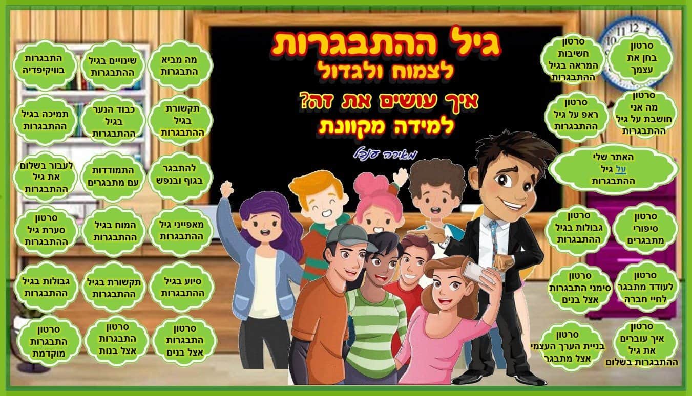 ![]() גיל ההתבגרות הוא תקופת מעבר בין הילדות לבגרות והמתבגרים והמתבגרות עוברים שינויים רבים - שינויים גופניים, שינויים קוגניטיביים, רגשיים וחברתיים. גיל ההתבגרות הוא תקופת מעבר בין הילדות לבגרות והמתבגרים והמתבגרות עוברים שינויים רבים - שינויים גופניים, שינויים קוגניטיביים, רגשיים וחברתיים. תקופת המעבר היא התקופה בין הילדות לבגרות ולכן היא נקראת "גיל ההתבגרות". אמנם אין הגדרה אחידה ומקובלת על הכול לגבי משכה של ההתבגרות, אך על פי רוב, תקופת ההתבגרות מוגדרת מגיל 11 או 12 עד גיל 18. על פי רוב מקובל לקבוע את גיל ההתחלה של תקופת ההתבגרות בהיסמך על הביולוגיה, בעוד שאת גיל הסיום של תקופה זו מגדירה החברה. מקובל לחלק את תקופת ההתבגרות לתת-תקופות: גילאי טרום-ההתבגרות: מגיל 11 עד 13 גילאי ההתבגרות: מגיל 13 עד 16 גילאי ההתבגרות המאוחרת: מגיל 16 עד 18 שינויים המתרחשים בתקופת ההתבגרות