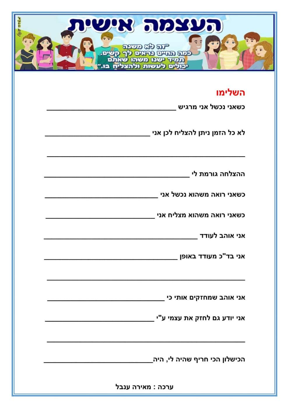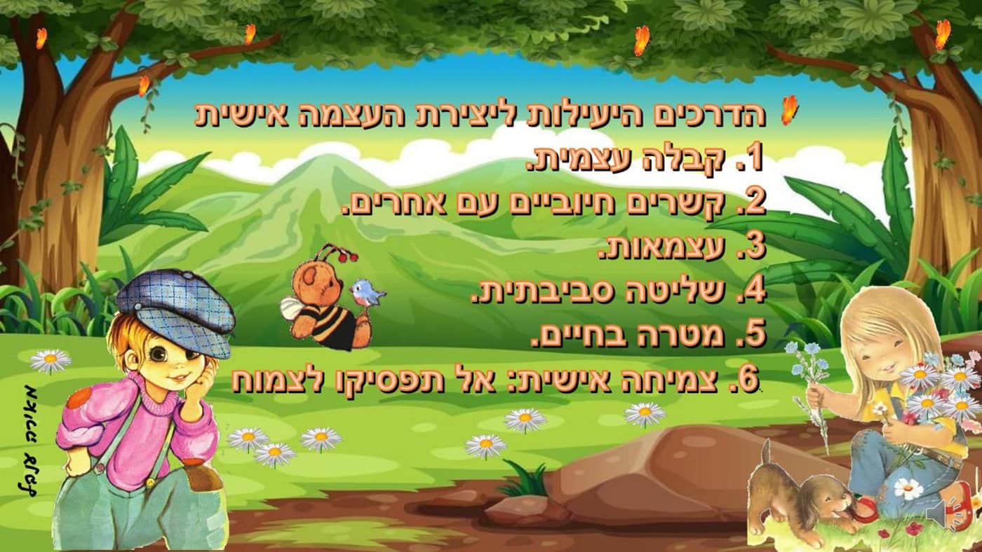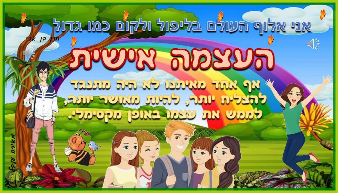 נסו להבין מהו שביל ההתפתחות שלכם, מה הוא מכיל, מה אני צריך לעשות על מנת לממש זאת. זהו מסע מצמיח ומגדיל, המאפשר לעצמי להתעצם ולהרגיש בעל מסוגלות טובה יותר.