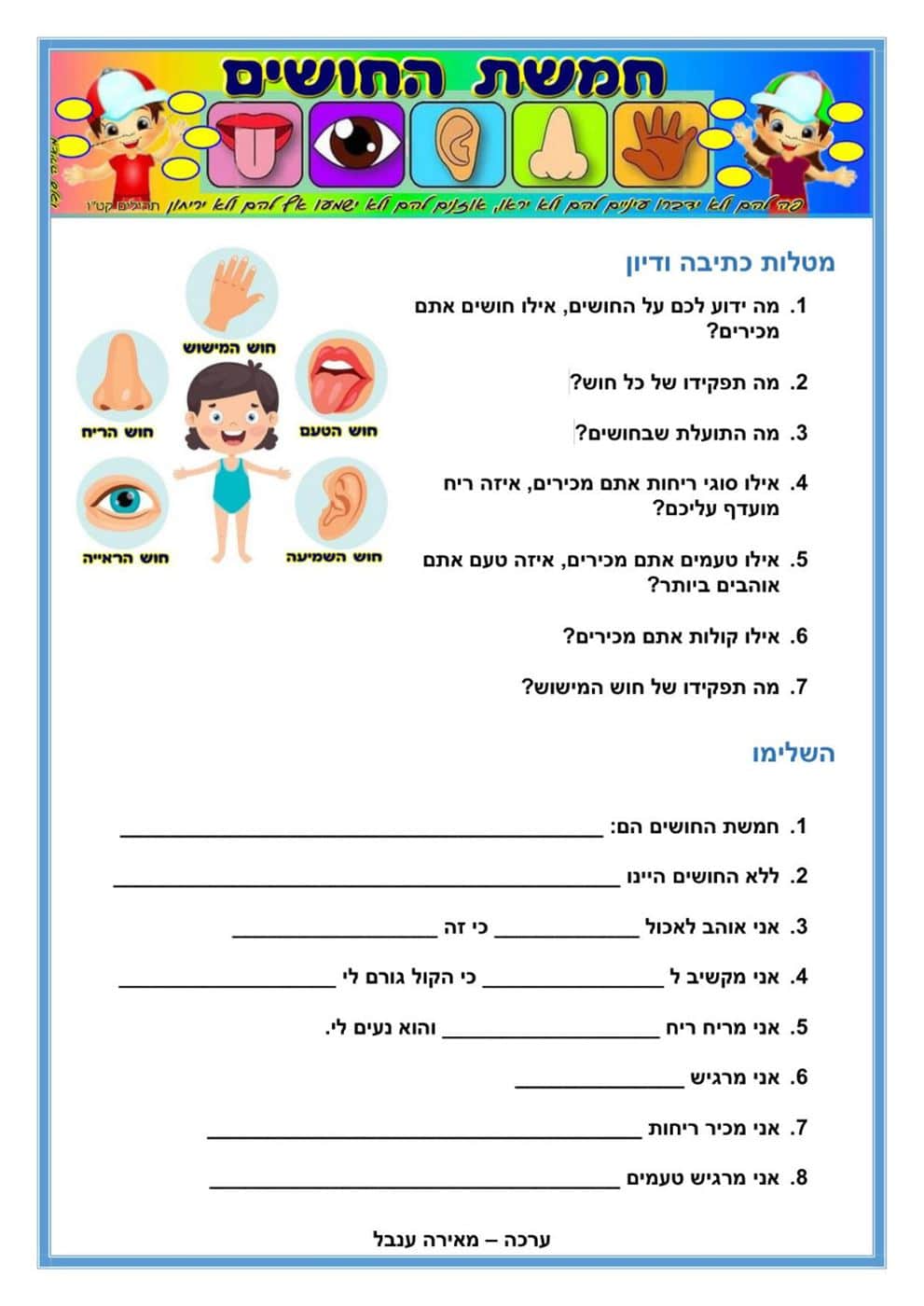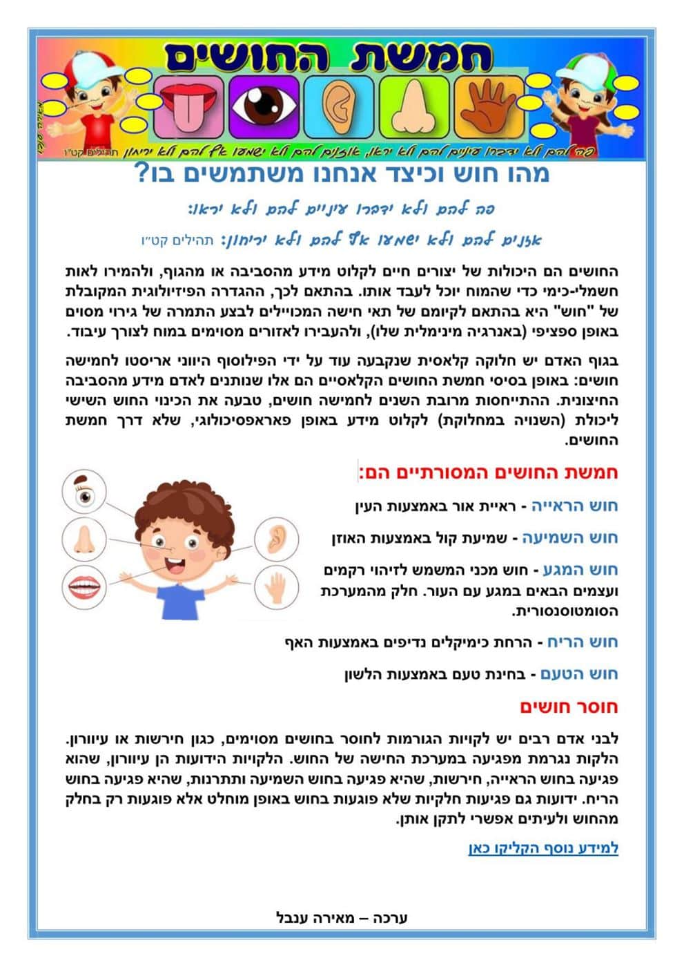 למידה מקוונת בנושא חמשת החושים