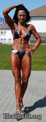 אלנה פרנקל- מקום שני בתחרות מיס פיטנס 2006 של איגוד NABBA תאריך לידה: 03.03.1970 מקום מגורים: נתניה כמה שנים אתה מתאמן ? כמעט 6 שנים. מה הגובה שלך : 1.68 מ'. מצב משפחתי: נשואה +2. כמה שקלת בתחרות? 54 קילו. איך הגעת ל-Healthnfit ? דרך האינטרנט. מה דעתך על ד"ר קובי עזרא? דר' קובי עזרא מקצוען בתחום של פיתוח הגוף ורפואה נטורופתית, ובנאדם טוב. במה התזונה שלך שונה "באוף סיזאן" לעומת התזונה שהייתה לך לפני התחרות ? לפני התחרות אני מורידה בפחמימות וממתקים. כמה פעמים בשבוע את מתאמנת? בדרך כלל 4-5 פעמים. כמה זמן נערך כל אימון שלך ? שעה וחצי. אירובי את עושה כל השנה או רק בהכנה לתחרות ? כל השנה. כמה זמן לפני התחרות נכנסת לדיאטה ולאירובי ? חודשיים לפני התחרות. במה את עוסקת בחיי היום יום? אני מדריכה בחדר כושר. איך המשפחה והחברים מגיבים למה שאת עושה ? מכבדים מאוד את מה שאני עושה. מהם השאיפות שלך לעתיד הרחוק? לבדוק את עצמי ברמה אירופאית. את מתכוונת להתחרות שנה הבאה במיס פיטנס? כן. מהם תוספי המזון שאת צורכת כעת ? אבקת חלבון. מאיפה צברת את כל הידע שלך ? למדתי, קראתי הרבה ספרים . איזה עצות את יכולה לתת לבנות אחרות שרוצות להשיג גוף מחוטב ויפה? קודם כל לא לפחד מאימון משקולות( זה לא עושה שרירים כמו לגברים),לשמור תזונה נכונה ולעמוד במטרה . -מהו התרגיל המועדף עלייך ? סקווט עם מוט חופשי. -מהו התרגיל השנוא עלייך ? אין . -מהו לדעתך השריר המפותח ביותר בגופך ? שרירי הגב. -מהו לדעתך השריר שאת צריכה הרבה תשומת לב והשקעה? תאומים. -מה את הכי אוהבת לאכול באוף סיזן או שאת אוכלת די נקי? כמעט ואין לי הבדלים בתזונה. -כמה תחרויות עשית עד עכשיו ? השתתפתי פעמיים - 2005 ו-2006 . -אחרי כמה זמן שהתחלת להתאמן התחלת להשתמש בתוספי מזון ? בערך אחרי שנה . -איזה קשיים עברו על המשפחה והסובבים אותך לקראת ההכנה לתחרות ? לא היו לי קשיים . -כמה את לוחצת חזה ? 30 קילו 15 פעמים . -וכמה בסקוואטים? 40 קילו 12 פעמים. -כמה פעמים בשבוע את מאמנת שריר ? פעמיים בשבוע. -יש לך משהו להגיד לסיום? מאוד נחמד ותודה שיש לכם כזה אתר - HealthNFit ! תודה אלנה על תשובותיך הגענו לסוף הריאיון. תמונות של הלנה פיתוח גוף נשים: