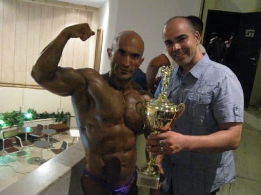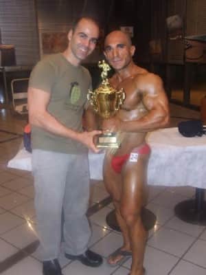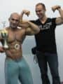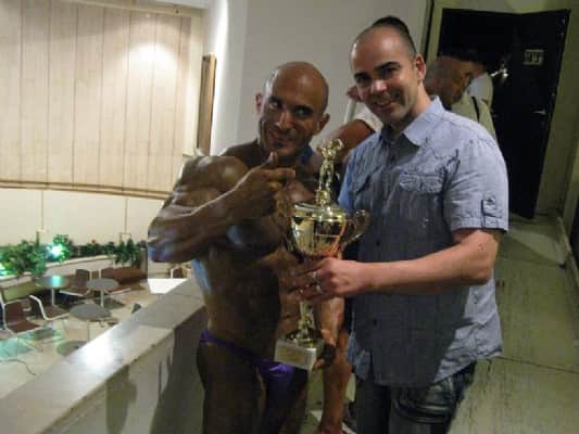 בתמונה שלומי בחברת מאמנו מר קובי עזרא (לאחר הזכיה בתחרות מר ישראל 2009) - מדגימים שרירים, נו מה אתם אומרים...