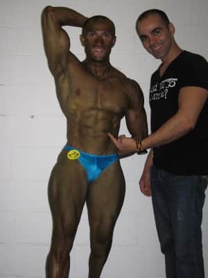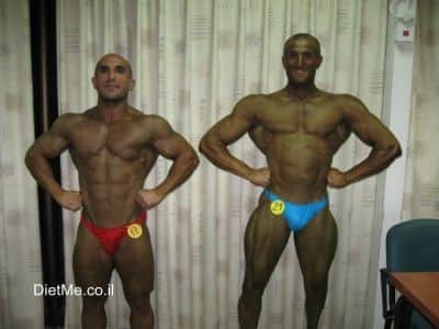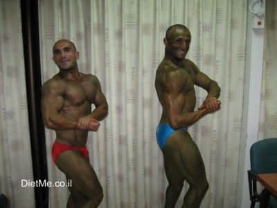 השרירן טל יחד עם מאמנו יעקב עזרא (בצילום בדרך המראה). חשוב להדגיש כי המראה הנ"ל לאחר דיאטה לחיטובי הגוף והשרירים.