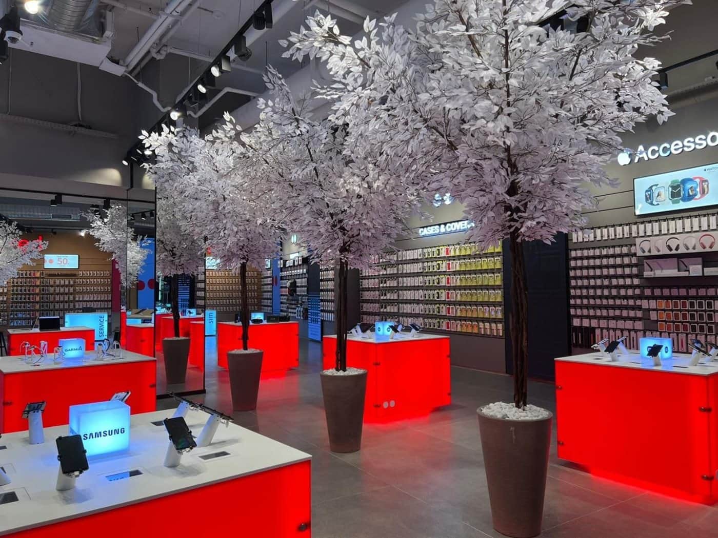 קולקציית עצים בלבן, שחור, אדום וסגול