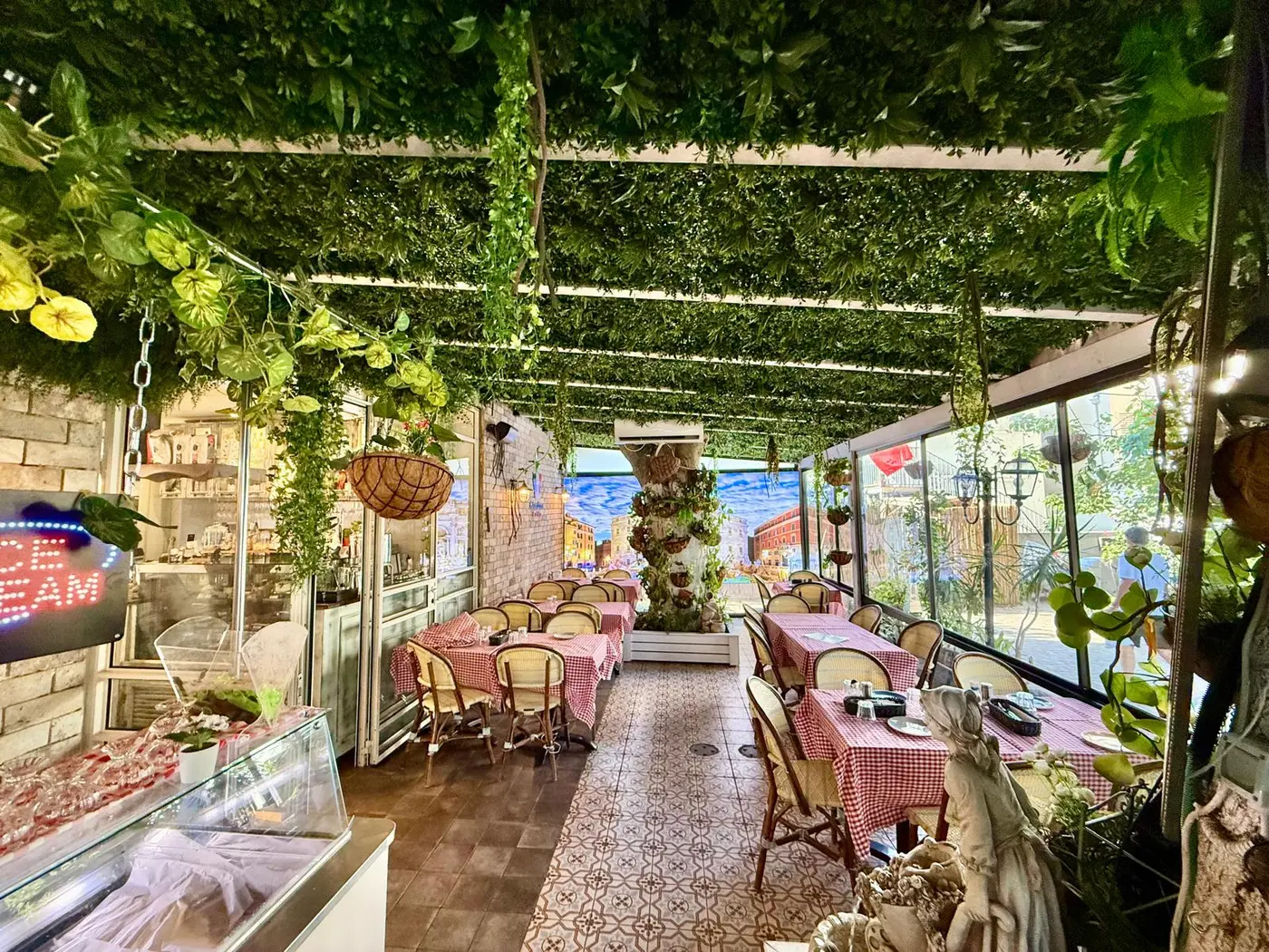 שילוב של צמחייה נשפכת על ציור קיר- "ארומה"