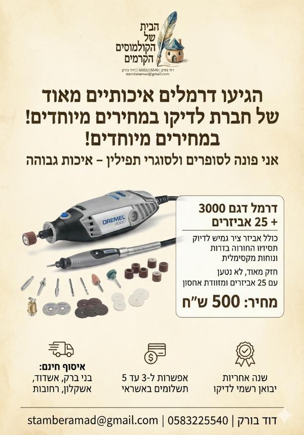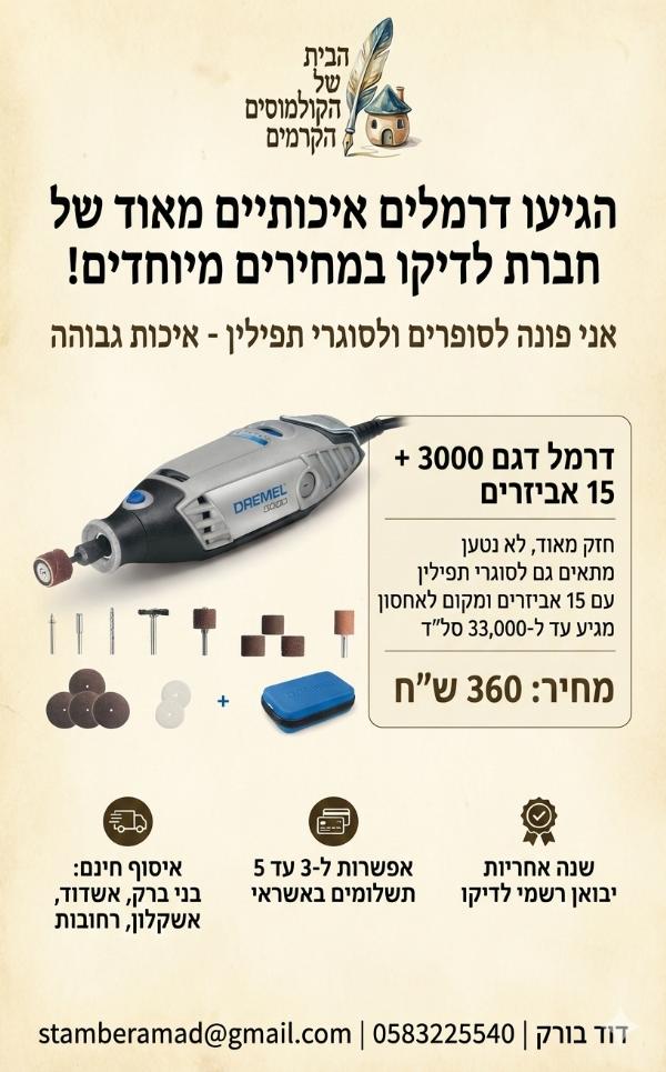 כל המכשירים הינם מבית DREMEL העולמית, עם שנה אחריות ע"י היבואן הרשמי "לדיקו".