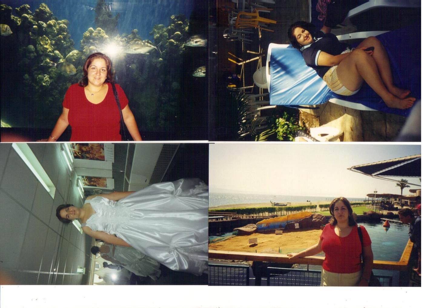 ![]() 3 תמונות של ויקי מהטיול לאילת. תמונה אחת של מדידות שמלת החתונה. |
