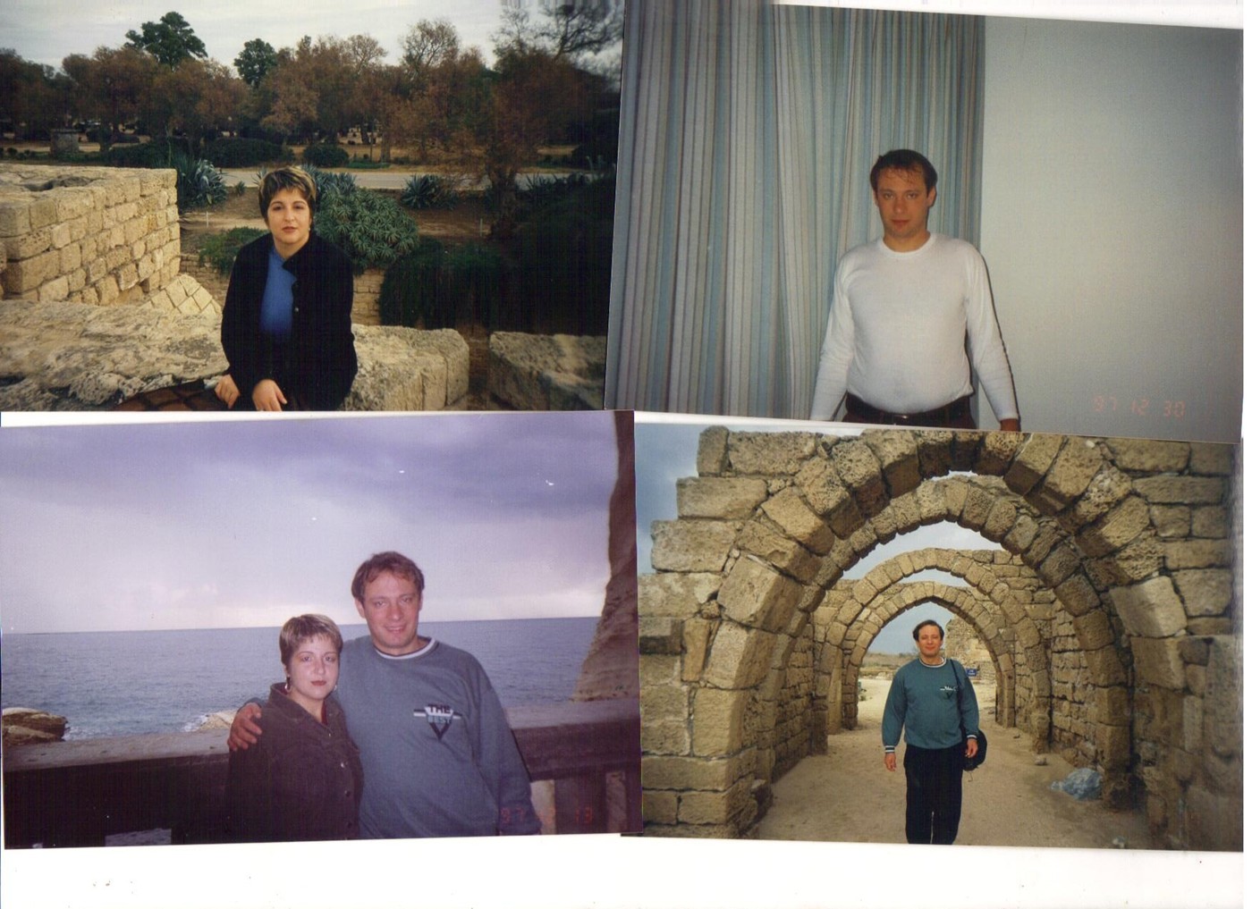 ![]() תמונות שלי ושל ויקי בתקופת החברות: ממלון חוות בזכרון יעקב, מקיסריה ומראש הנקרה. |