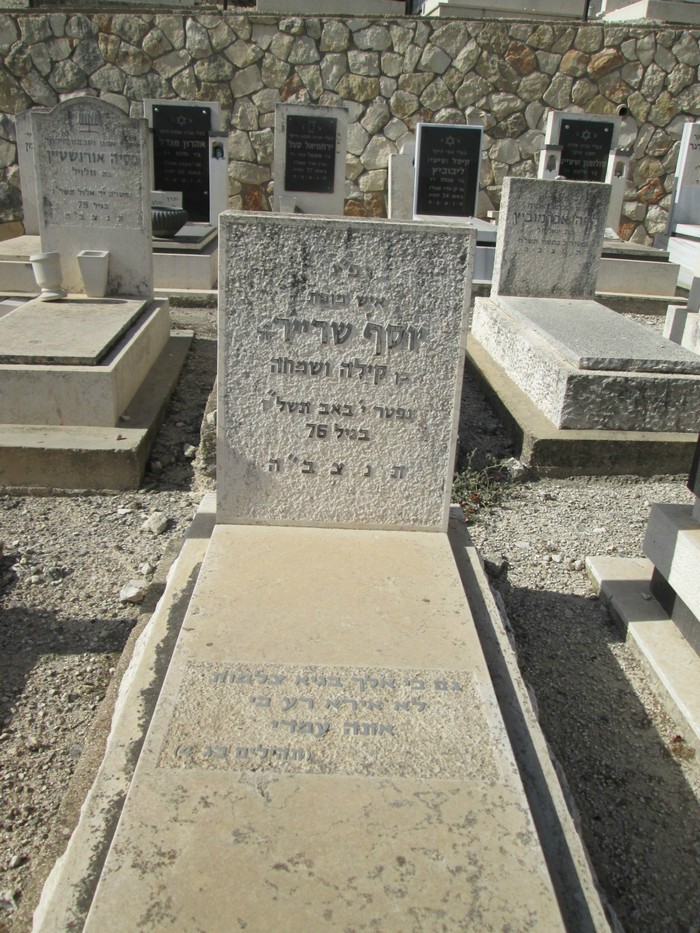 ![]() ![]() ![]() ![]() ![]() ![]() להלן קישור מהאתר נשמה:http://www.neshama.info/default.aspx?pageId=7&stoneId=129881 יוסף שרייר נולד בסטניסלבוב שבפולין בשנת 1901. עלה לארץ ישראל בסוף שנות העשרים של המאה העשרים. בני משפחתו שנשארו בפולין נספו בשואה ב-12/10/1941 בטבח של יום הראשון העקוב מדם בהושענא רבא. התחתן עם רחל לבית משפחת מלר. נולד להם בן יחיד ב-8/5/1938 בשם שמחה, ששינה את שם משפחתו לשרון. שמחה שרון התחתן עם נעמי בייליס ונולד להם בן ב-7/9/1968 בשם אמיתי. לאחר הגירושים חי שמחה שרון עד תאריך פטירתו ב-13/6/2004 עם בת זוגתו מרגנית, ונולדו להם שלושה ילדים משותפים: גיל, רחל ועודד. מרגנית גם הביאה את בתה מנישואיה הקודמים, מיכל. יוסף שרייר גר כל חייו ברחוב מסדה 14 בחיפה. נפטר בגיל 76 ב-25/7/1977 בי' באב התשל"ז. בתמונות שצולמו על מרפסת ביתו ברחוב מסדה 14 בחיפה, שבו הוא מחזיק אותי בולטות התמונות שבהן היה בריא מול התמונות, שהיה כבר חולה, וכנראה צולמו זמן זמן קצר לפני פטירתו. התמונות שהוא בריא צולמו ככל הנראה בחורף (לפי הלבוש), ואילו האחרות צולמו ככל הנראה בקיץ 1977. בולטות הפנים המלאות מול הפנים הרזות, בולט החיוך המכסה את הפנים מול העדרו, ויותר מכל בולטות העיניים המדברות והזועקות בתחינה או בתפילה, כאשר היה כבר חולה, לעומת העיניים מלאות הבטחון וחסרות הדאגות, כאשר היה בריא. כמו כן בולט גם הגוף הזקוף מול הגוף השפוף. כילד, כמובן, לא שמתי לב לדברים הללו, אך כמבוגר אני יכול לומר שאין בכלל ספק שהתמונות כאן מדברות או אפילו צועקות בעד עצמן באמצעות שפת הגוף, שאף פעם איננה משקרת. ת.נ.צ.ב.ה: נוח על משכבך, סבא, בשלום. נפשך וכן נשמות בני משפחתך היקרה שנספתה בשואה ע"י הנאצים ימח שמם וזכרם בטבח של סטניסלבוב בפולין ב-12/10/1941 (טבח הושענא רבא, הקרוי בשם יום ראשון העקוב מדם) ממשיכות ותמשכנה לשכון ולהיות צרורות לעד בנשמות נכדיך, וניניך. |