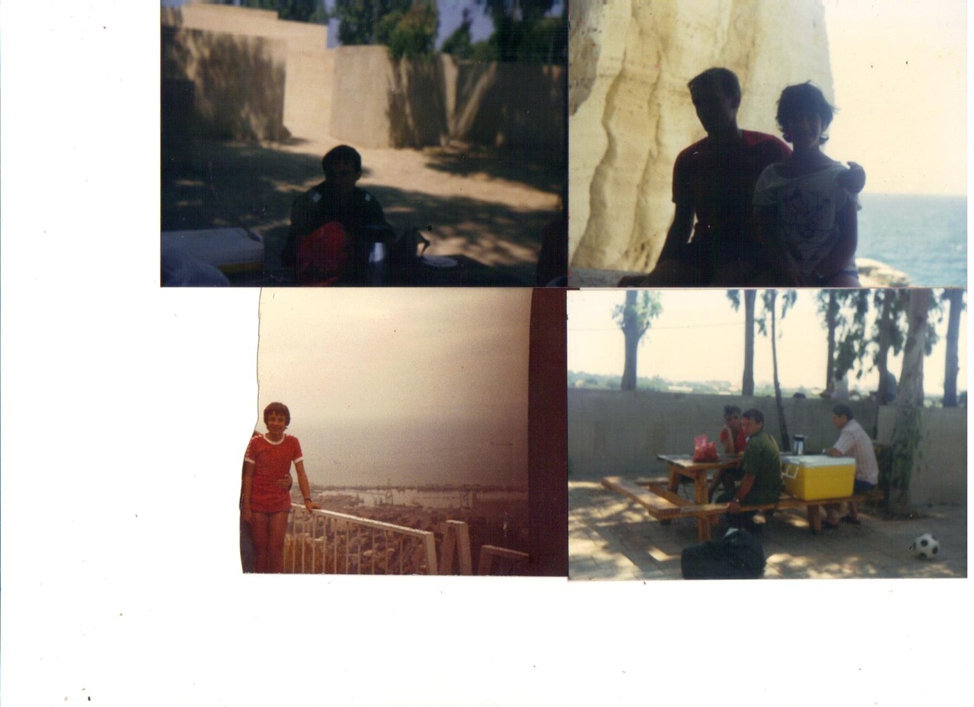 ![]() בתמונה הימנית מלמעלה: אני ואחותי, מרב בראש הנקרה. בתמונה השמאלית למעלה: אני בטירונות במחנה דותן. בתמונה הימנית למעטה: אני בטירונות במחנה דותן עם הוריי במהלך ביקור שלהם. בתמונה השמאלית למעטה: אני באיזור טיילת לואי במרכז הכרמל בחיפה. מי קרע את התמונה? לא יודע: כך זה הגיע לידיי. |