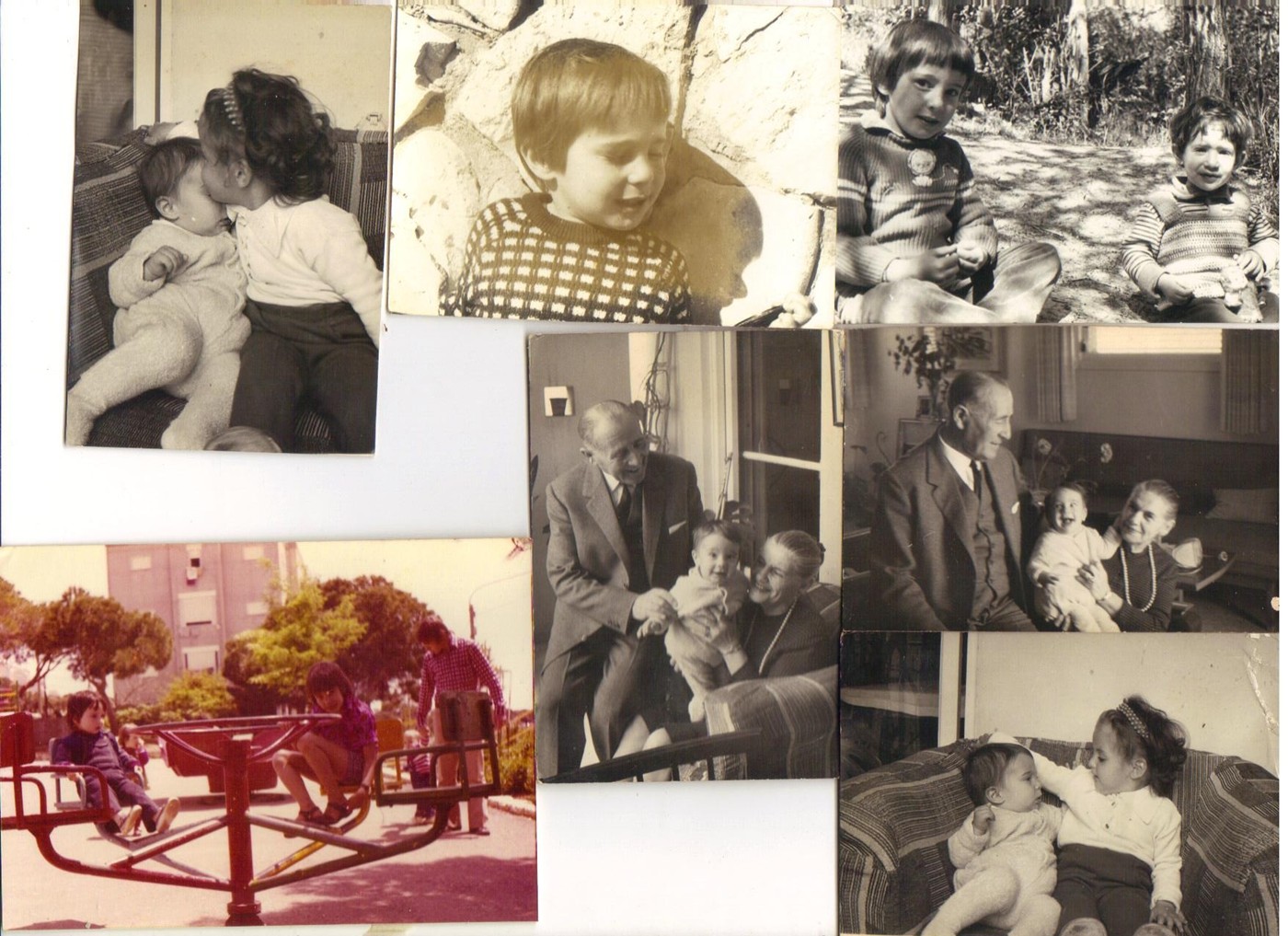 ![]() תמונה שמאלית למעלה וימנית למעטה: אני ואודליה אלטמן (כיום עו"ד מוכרת בתחום ענייני משפחה). תמונה שמאלית למעלה: אני ומיכל (בתה של בת זוגתו של אבי הביולוגי ז"ל מנישואיה הראשונים). בתמונות האמצעיות: אני ומניה ואפרים אלטמן (סבא וסבתא ז"ל של אימי). בתמונה השמאלית למעטה: אני ואחי עופר בגן משחקים ברחוב איינשטיין בחיפה. |