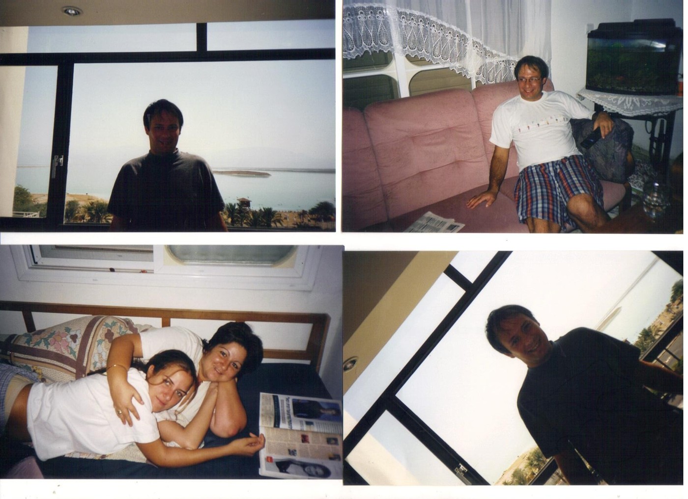![]() תמונות שלי מים המלח. תמונה ימנית למעלה: בבית חמי וחמותי (גואל ורחל שמו) ביבנאל. תמונה שמאלית למטה: ויקי עם אחותה ליאת בבית חמי חמותי ביבנאל. |