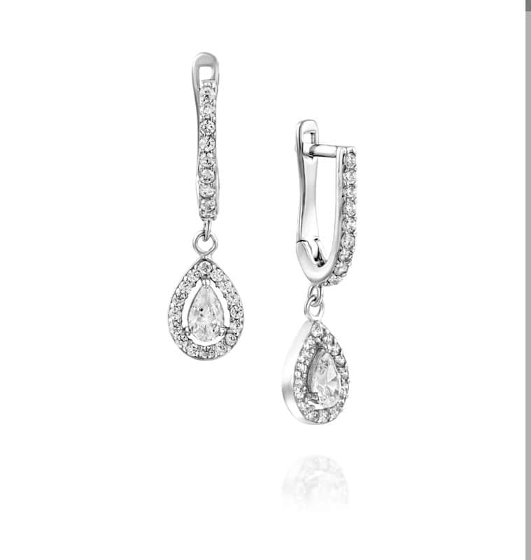 עגילי טיפה נופלים כסף משובץ