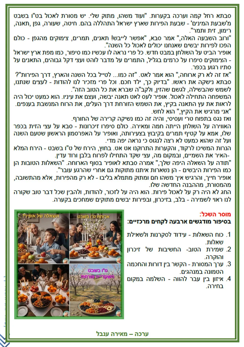 מערכי שעור והדרכה לט"ו בשבט