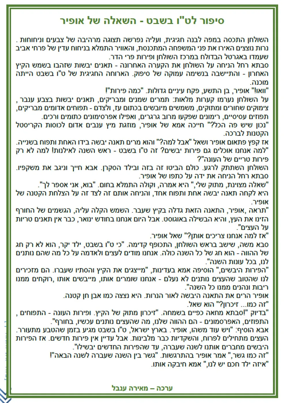 ט"ו בשבט באתר דף ראשון שלי - יצירה