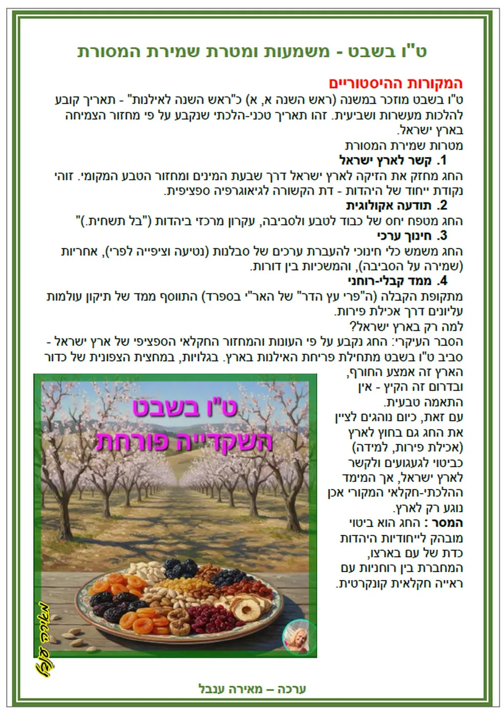 מצגת לט"ו בשבט – החג משמעותו מקורותיו ומנהגיו