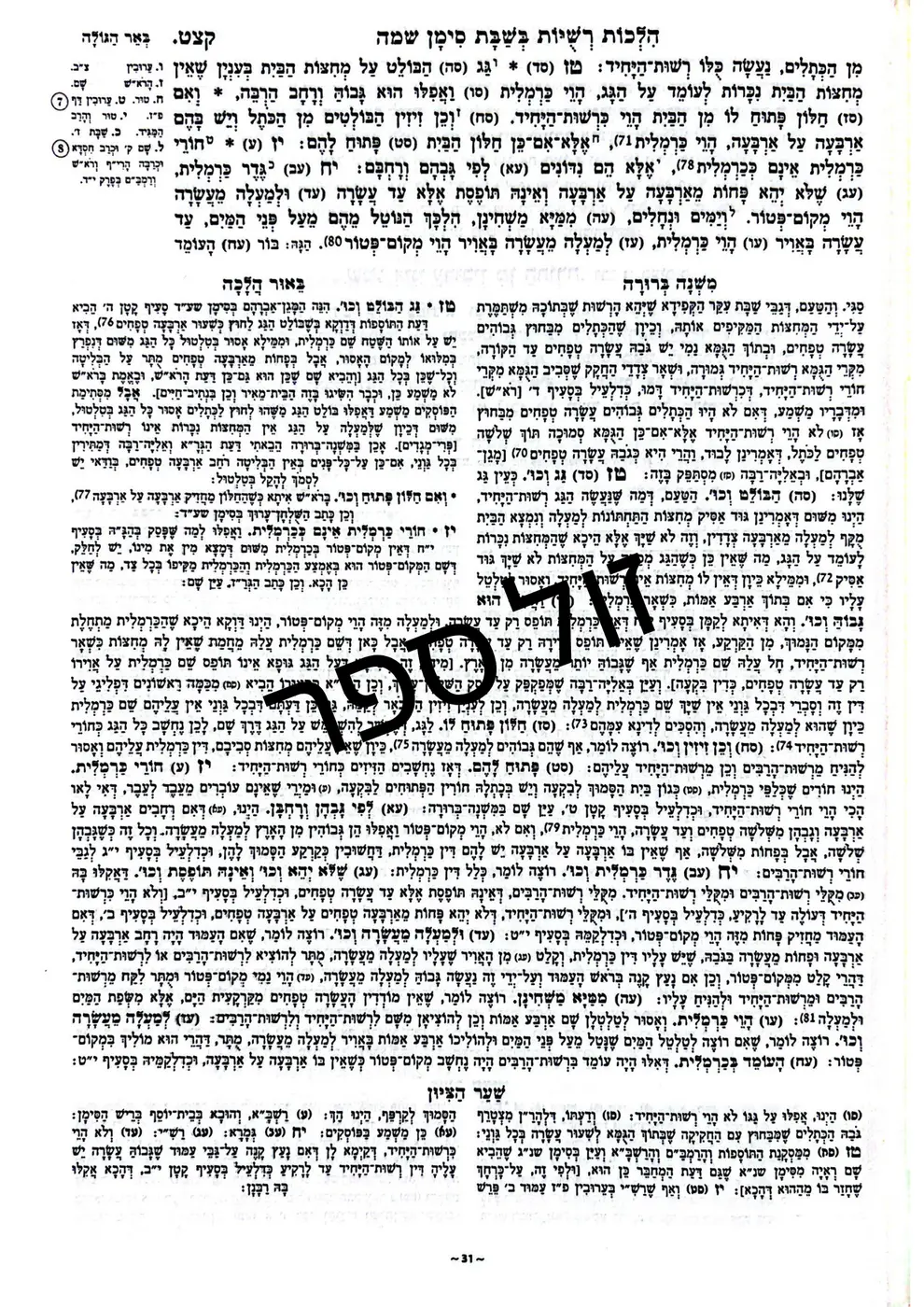 משנה ברורה 'תפארת' - עם ליקוט פסקי גדולי הפוסקים לדורותיהם חלק א' 1 סימנים - א - מט. בראש הספר קונטרס פתוחי חותם על כללי השולחן ערוך.