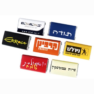 שוקולדים ממותגים או שוקולד עם פרסומת או לוגו החברה על השוקולד,כמו כן אנו מייצרים עבור החברות סוכריות עם הלוגו שלהם על הסוכריות או על השוקולדים,למוצר הנ"ל יש כמויות מינימום