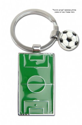 מחזיק מפתחות כדורגל בציפוי אמאיל,על המחזיק נראה מגרש כדורגל עם כדור בצד,מתנה לאוהבי הכדורגל או לבר מצווה,ניתן לבצע חריטה של שם הילד על המחזיק מפתחות או לוגו על המוצר