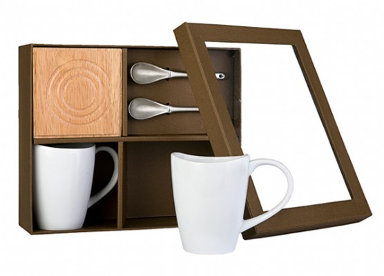 סט של כוסות מאג פורצלן זוגי הכולל 2 תחתיות עץ ושתי כפיות מתכת,מגיע במארז עם חלון שקוף כמתנה,ניתן להדפיס לוגו על הכוסות,מתאים כמתנה סמלית ללקוחות או לעובדים