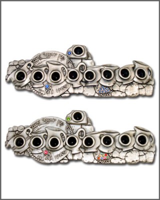 מבחר חנוכיות שונות ומיוחדות העשויות בעבודת יד,החנוכיות מעוטרות באבנים בצעים שונים כמו כחול או אדום,בצורות שונות כמו חנוכיה בצורת יונה,בצורת טיפה,בצורת גל ועוד,החנוכיה מגיעה במארז מתנה עשוי קרטון על גבי ספוג,ניתן לשים לוגו של החברה על החנוכיה במהלך יציקת החנוכיה.אין ספק שזו מתנה מיוחדת לחנוכה ולא שגרתית