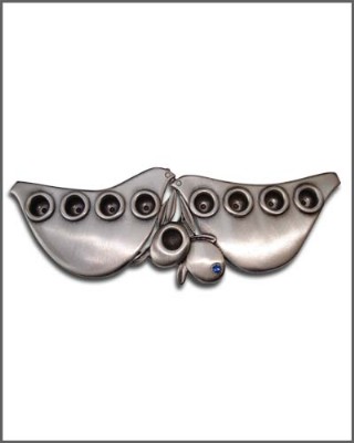 מבחר חנוכיות שונות ומיוחדות העשויות בעבודת יד,החנוכיות מעוטרות באבנים בצעים שונים כמו כחול או אדום,בצורות שונות כמו חנוכיה בצורת יונה,בצורת טיפה,בצורת גל ועוד,החנוכיה מגיעה במארז מתנה עשוי קרטון על גבי ספוג,ניתן לשים לוגו של החברה על החנוכיה במהלך יציקת החנוכיה.אין ספק שזו מתנה מיוחדת לחנוכה ולא שגרתית