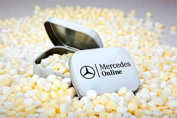 סוכריות בצורות וגדלים שונים עם לוגו הלקוח,הסוכריות יכולות להיות בקופסא מתכתית עם לוגו או סוכריות עטופות עם לוגו הלקוח מודפס על העטיפה של הסוכריה,הסוכריות ברובן הם סוכריות מנטה ללא סוכר.