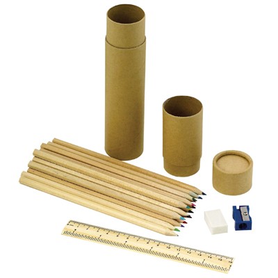 מארז כלי כתיבה ממוחזר,הכולל קרטון ממוחזר וכלי כתיבה
