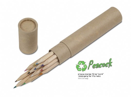 מארז גליל של 12 עפרונות צבעוניים,מארז ירוק ששומר על איכות הסביבה,מתאים כמתנה לתלמידים