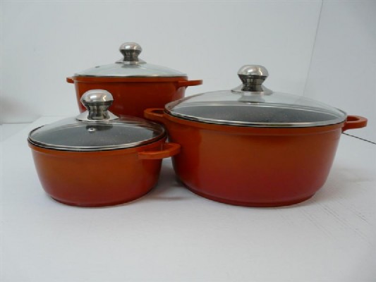 סט סירי יציקת אלומיניום כתום עם ציפוי קרמי שחור לב