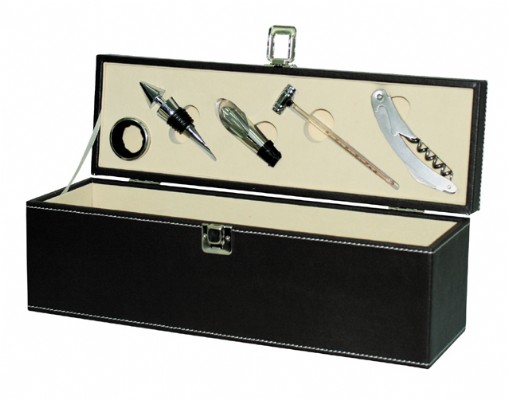 קופסת עור ואביזרים לבקבוק יין
