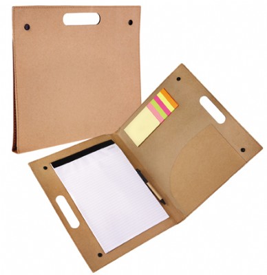 אוגדן ממוחזר A3 עם ניירות דביקים ועט ממוחזר מתאים כמוצר פרסום, מתאים לכנסים, אירועים
