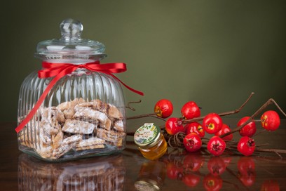 צנצנת זכוכית לאחסון,ניתן לשלב עוגיות ולעטוף בסרט יפה ולהגיש כמתנה לחג