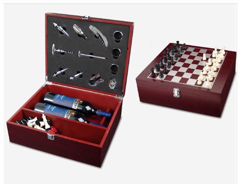 שח מט" מארז עץ ל 2 בקבוקי יין עם לוח שח מט ואביזר