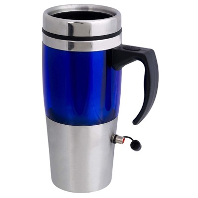 ספל טרמי כחול חשמלי לרכב וחיבור USB למחשב. מתאים כמתנה, מתנה ליום הולדת, לכנסים ,אירועים