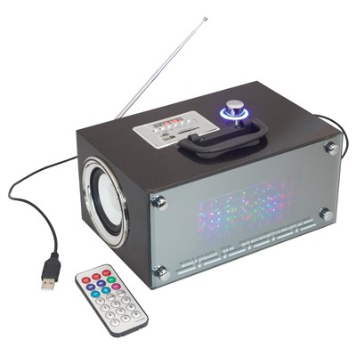 מתנה,מתנה לחג, מתנה ליום הולדת,רמקול סטריאו עם תאורת פלש ורדיו נטען עם כניסת USB לנגנים השונים.