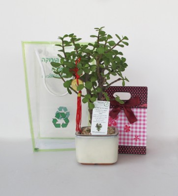 בונסאי כסף ומזל עם שקית פרות יבשים