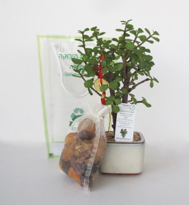 בונסאי כסף ומזל עם שקית פרות יבשים
