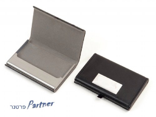קופסת כרטיסי ביקור דמוי עור עם לוחית,הלוחית עשויה מניקל.