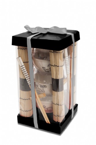 סט סושי ל 4 סועדים הכולל מחצלות , קעריות פורצלן מקלות אכילה רב פעמיות עם מעמד,