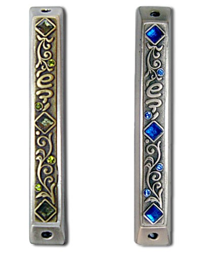 מזוזה צרה שדי ואבני חן מרובעות