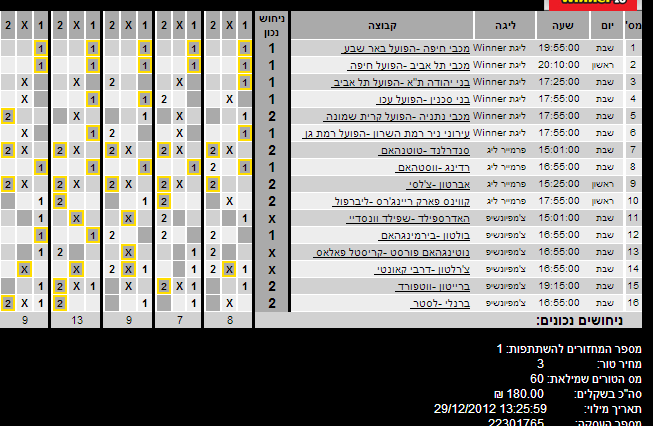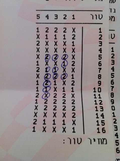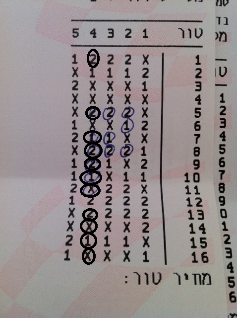 בשיטה זו קיימים 25 טורים ובטור האחרון ניחשתי 13 ניחושים, ניראה לי ממש טוב נמשיך באותה שיטה שבוע הבא ברוכים הבאים